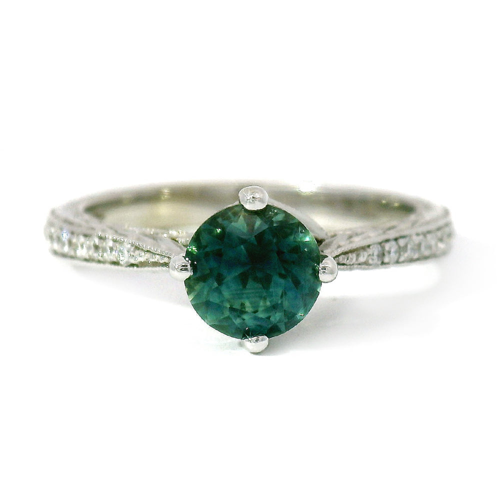 Green Montana Sapphire & Diamond Engagement Ring - "Eye of the Jungle"