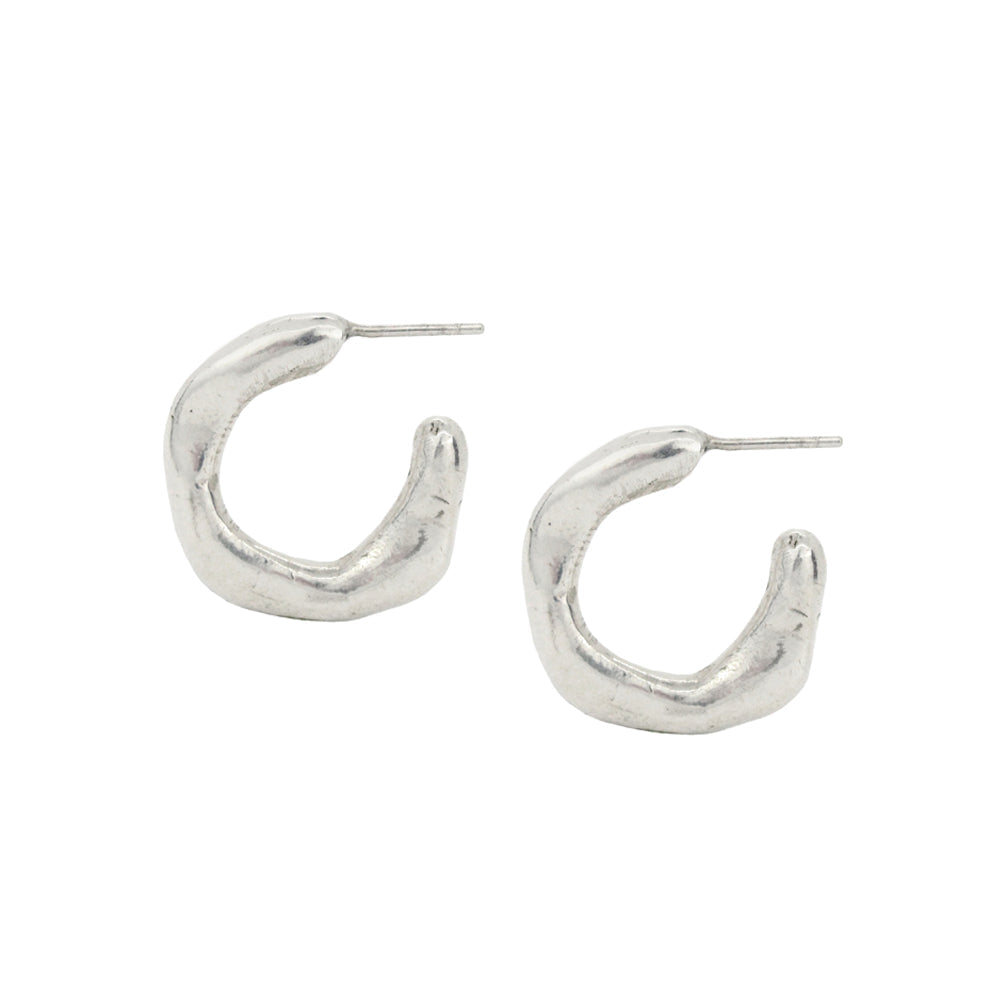 These sterling silver hoop earrings make an elegant statement with their organic design and sophisticated silhouette. Chic earrings that are designed to be extremely wearable for any occasion, making them a timelessly classic choice!
