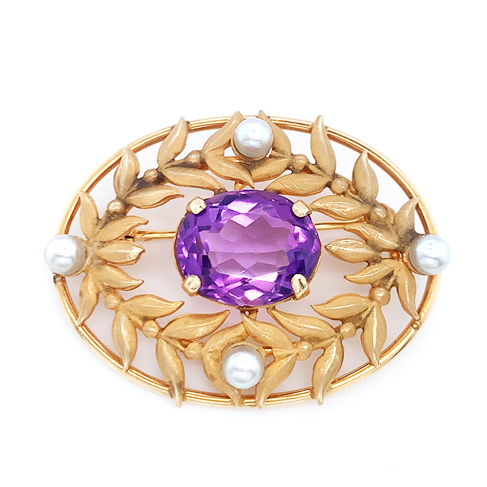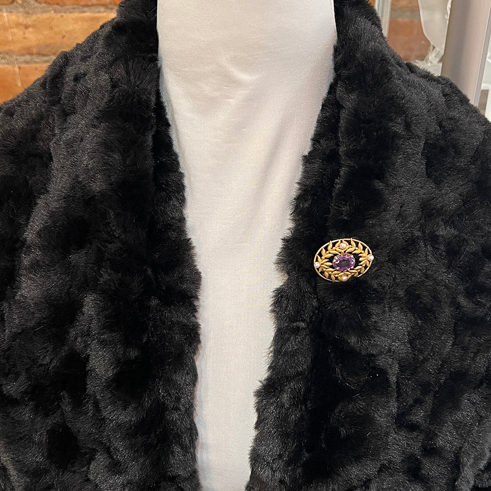 Vintage, oval wreath brooch- perfect for any purple lover!