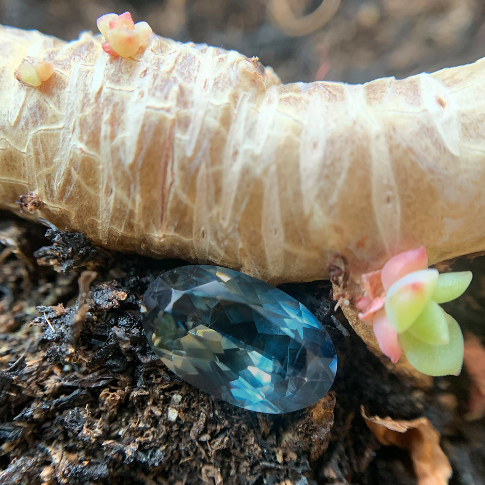 With facets glinting like light on ocean waves, this gorgeous elongated oval Montana sapphire whispers of deep tropical waters and beaches shaded by palm trees. Admire the calming essence of this beautiful loose gemstone; create the jewelry piece of your dreams with it as the focus!