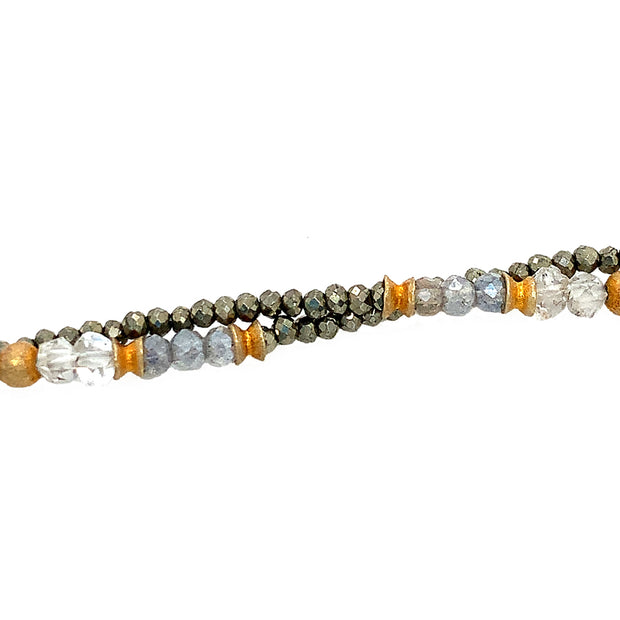 London Blue Topaz Rondelle Necklace - "Triple Textile"
