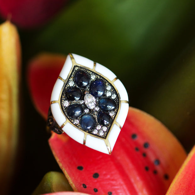 Yogo Sapphire Cluster Necklace - "Mosaic"
