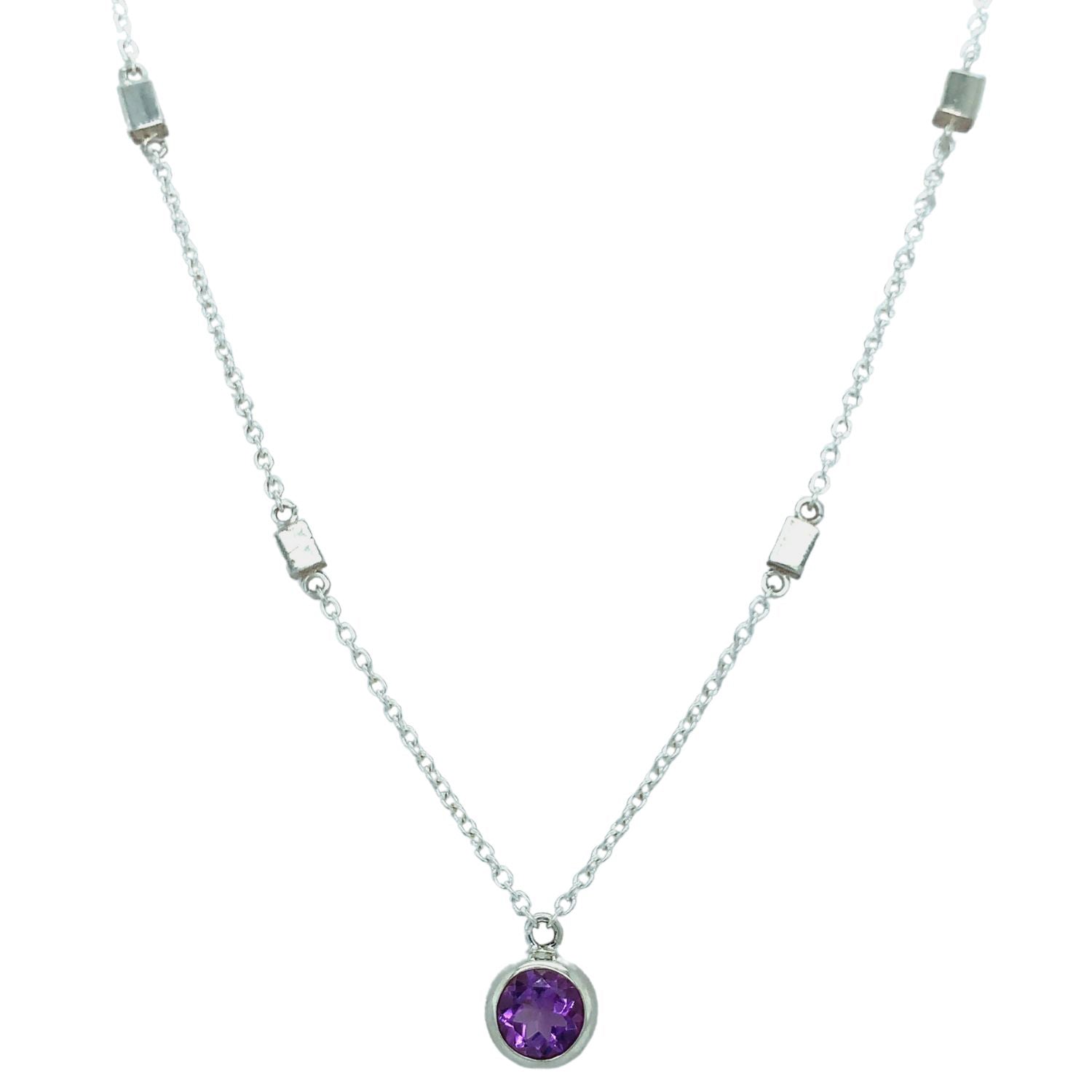 Lavender light glints inside this sterling silver bezel, facets catching and igniting. The bright metal and glimmering purple of the stone will complement any outfit, whether you dress it up or dress it down!