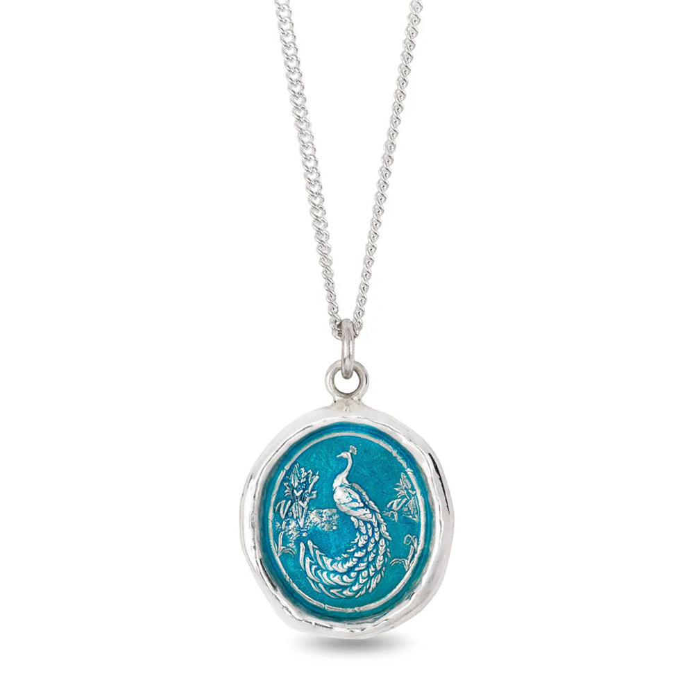 Sterling Silver 'Capri Blue' Peacock Talisman Necklace - "Peacock"