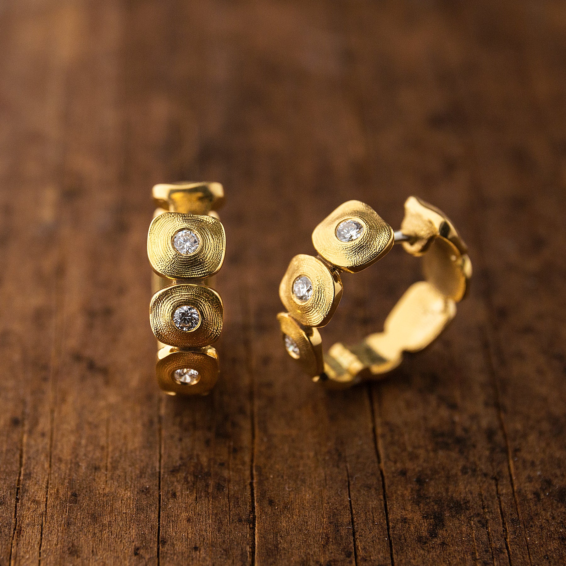 Diamond & Yellow Gold Hoop Earrings -"Dancing Squares"