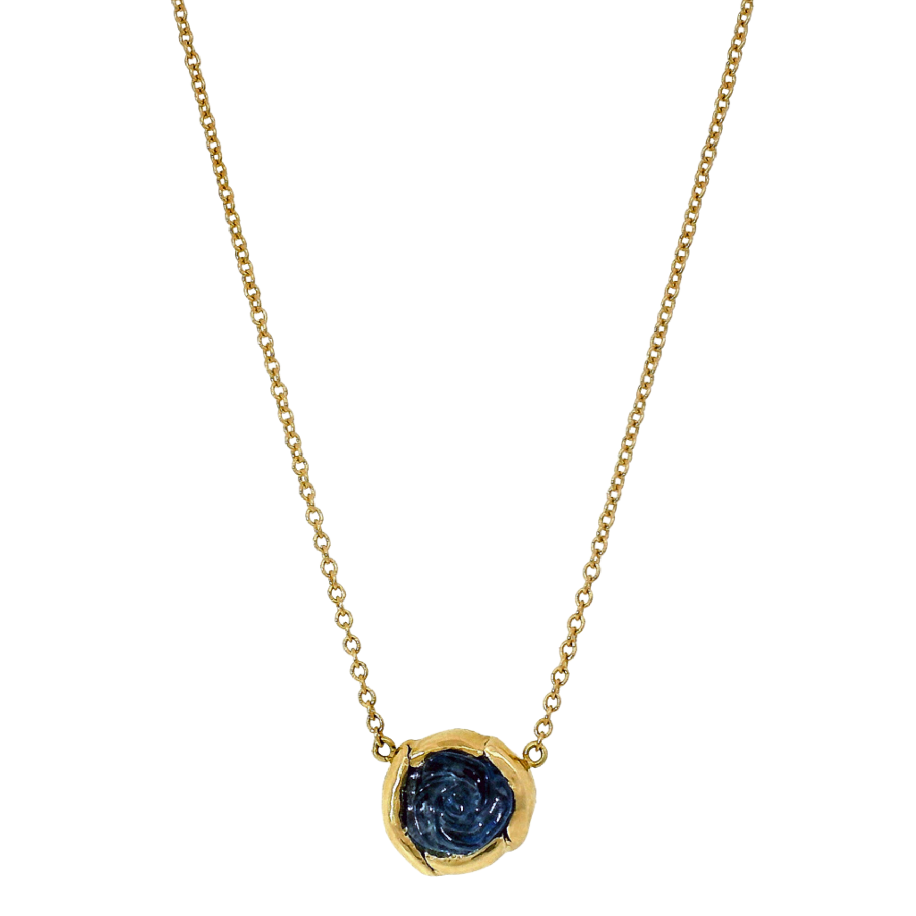 Carved Rose Yogo Sapphire & Yellow Gold Necklace - "Bloom"