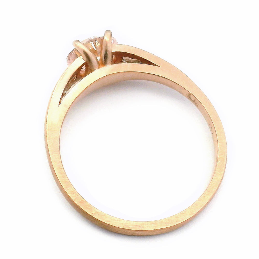 The "Prairie Thunder" ring showcases a pale pink Montana sapphire, its near-colorless, diamond-like brilliance, emitting a soft, ethereal glow. Prong-set in warm rose gold, the sapphire is flanked by tapered baguettes, adding sleek, architectural lines to the design. The subtle interplay of the stone’s delicate hue against the rose gold creates a piece that is refined, luminous, and airy, like a flash of energy across an open prairie.