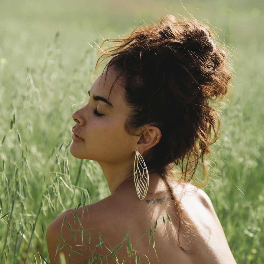 Have a lot of hair and still want an earring to stand out? Alexis Pavlantos has you covered!Ā These magnificent cicada wing earrings areĀ hand-carved and cast inĀ nickel-free sterling silver and are equipped with hefty earring back for extra stability. A organically inspired statement earring that is sure to please.Ā