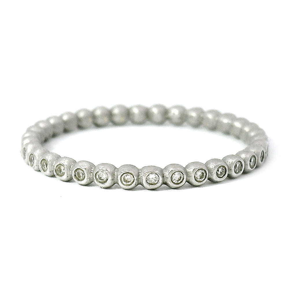 White Gold & Diamond Beaded Eternity Band - "Dainty Bubbles"