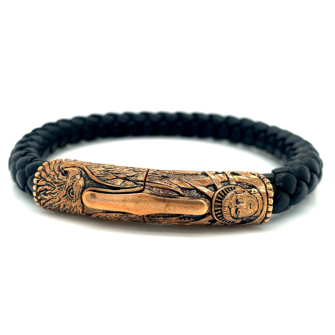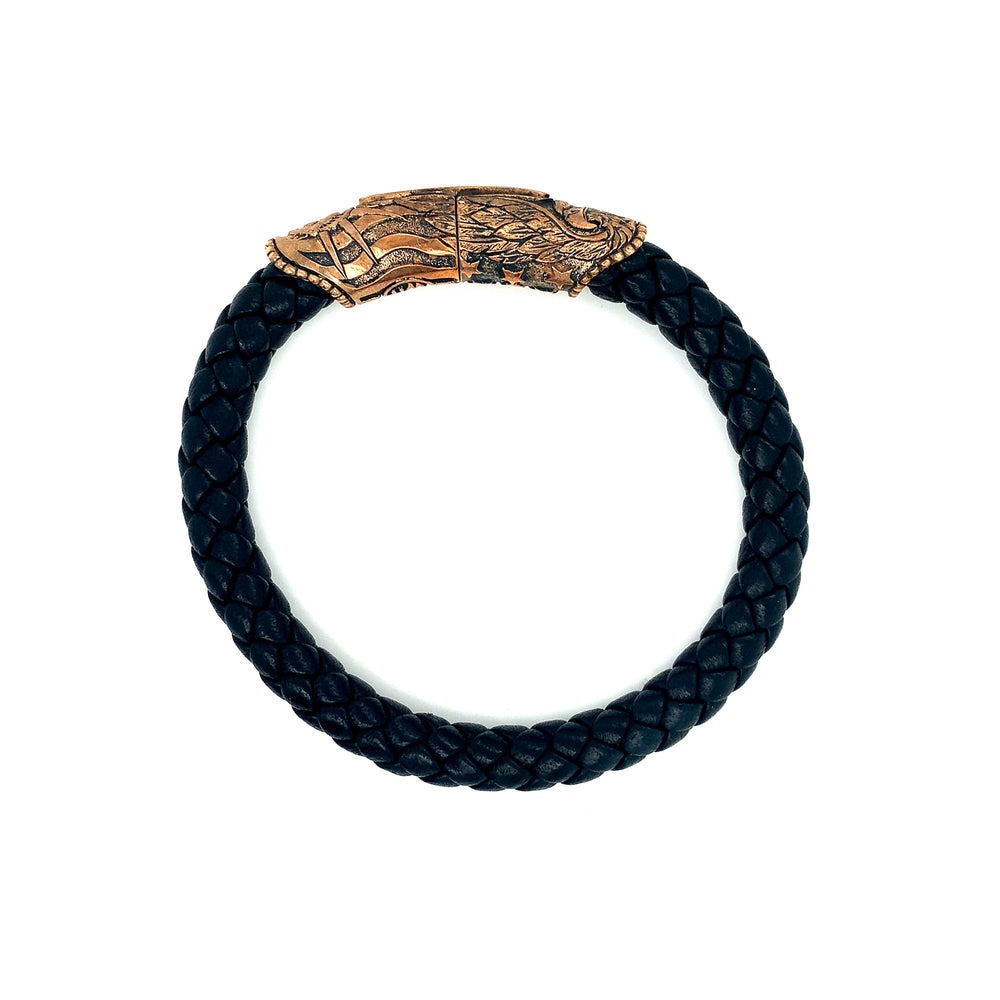 Sterling Silver Black Leather Custom Closure - "Orbit"