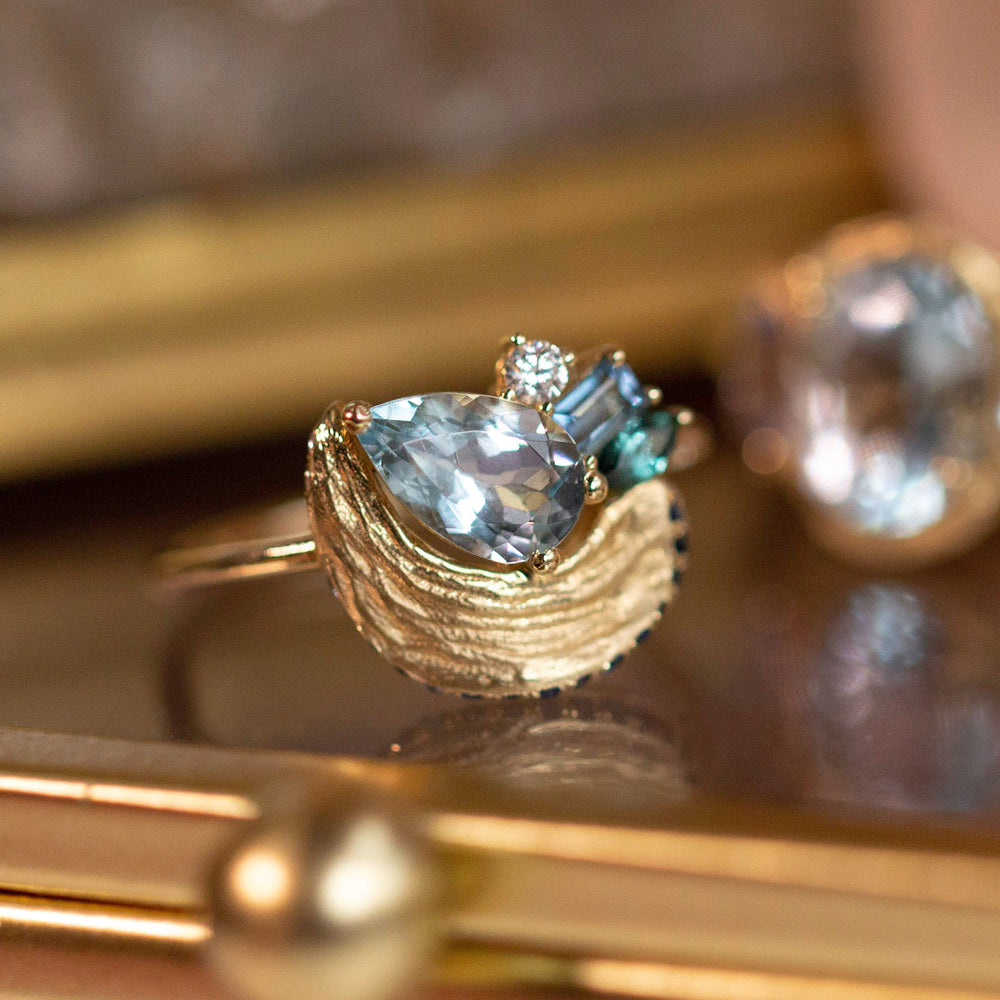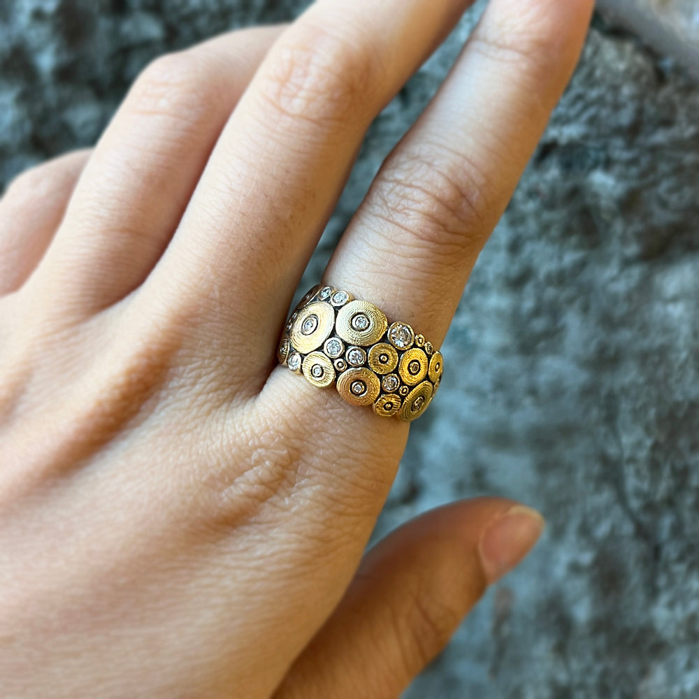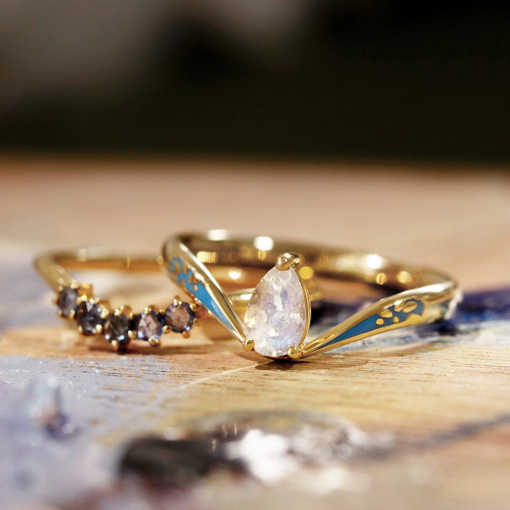 Some jewelry artisans, like Eun-Mi Han of Le Conte, literally base their designs on aspects of fine art. Her Pasto Collection, for example, features textures that are found in the pasto oil painting technique--wherein the paint has been applied thickly, with visible brush or palette-knife marks. Similarly, Eun-Mi's Sgrafitto Collection features enamel being used to create the two-toned "scratching" technique used in both painting, pottery, and other artforms.