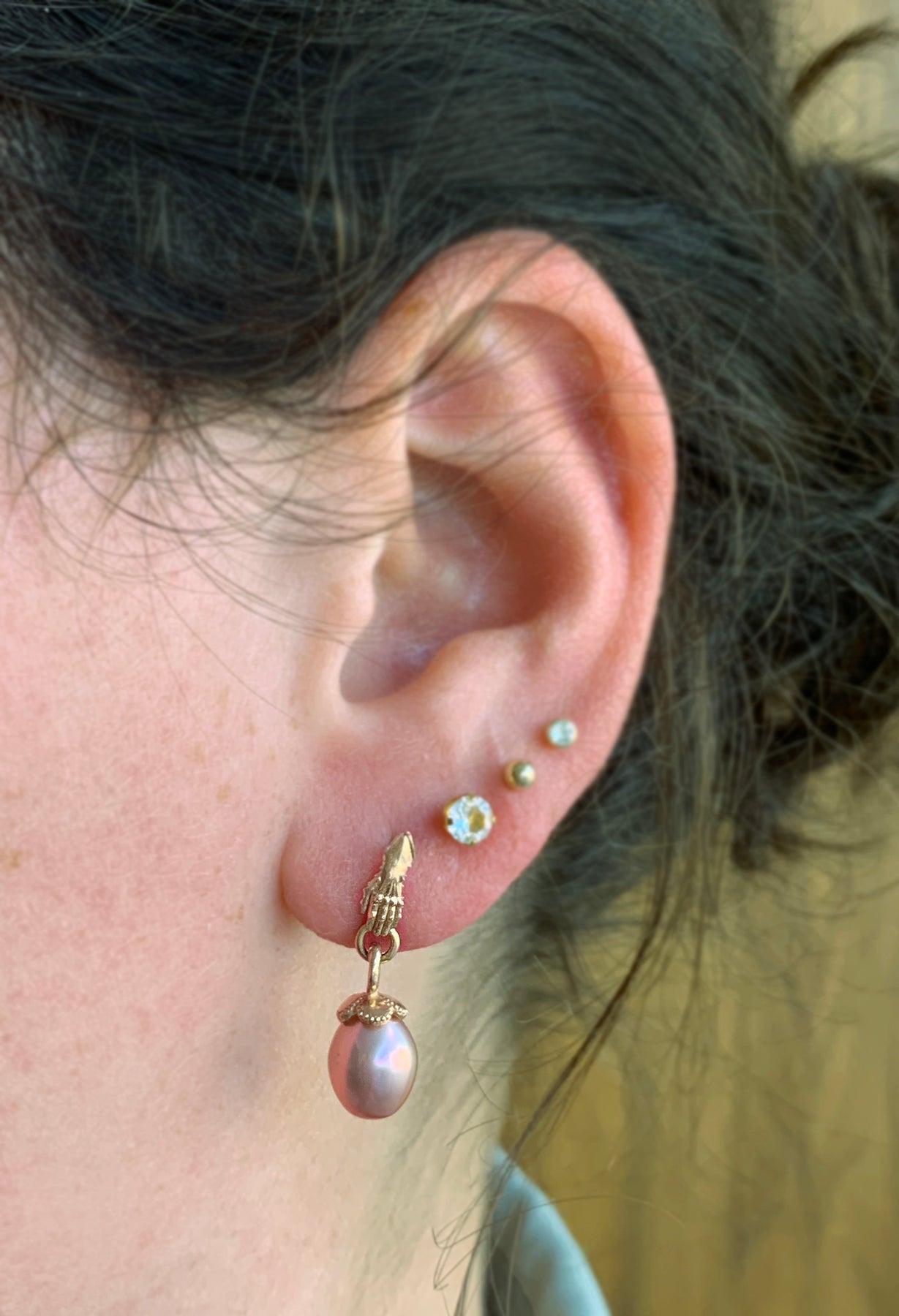 Introducing this single pink pearl stud, where edgy meets elegance in a stunning fusion of style. Suspended from a yellow gold gauntlet, this earring exudes timeless allure with a touch of daring flair. Versatile and eye-catching, this earring is perfect for minimalist statements or bold, asymmetrical looks. Dare to stand out with confidence and grace.