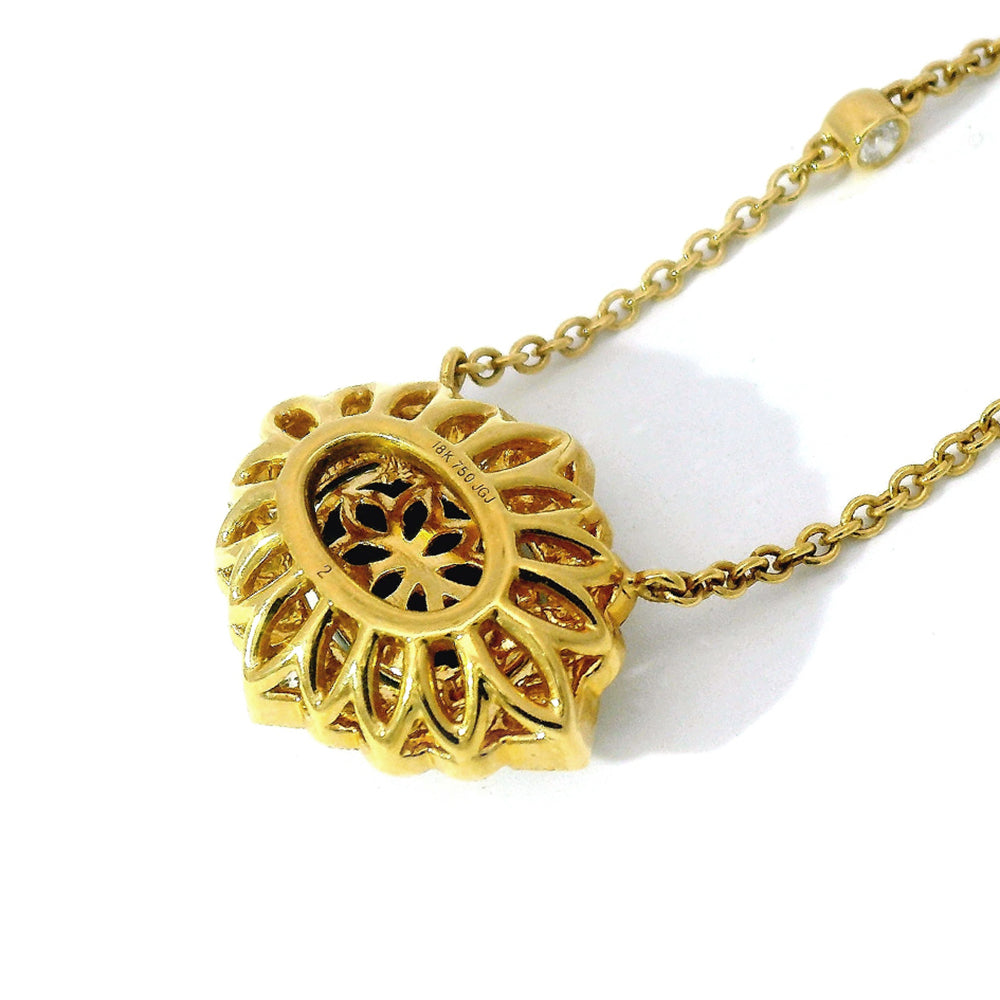 An Australian black opal, alive with shifting blues and greens, glows at the heart of this golden masterpiece. Encircled by a radiant halo of diamonds and suspended from a yellow gold chain adorned with bezel-set diamonds, it captures both fire and grace. Regal and resplendent, this necklace is nothing short of a crown jewel—fit for a queen.