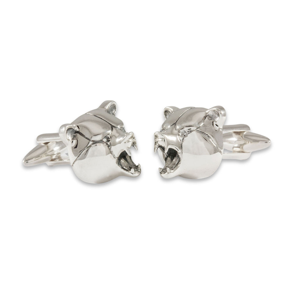 Catch these grizzly bears mid-roar! These roaring grizzly bear cufflinks by Kai Zaunick are perfectly handcrafted and polished. The dark, incised lines emphasize tension in the bears' faces, grabbing the attention of anyone who dares gaze at them.