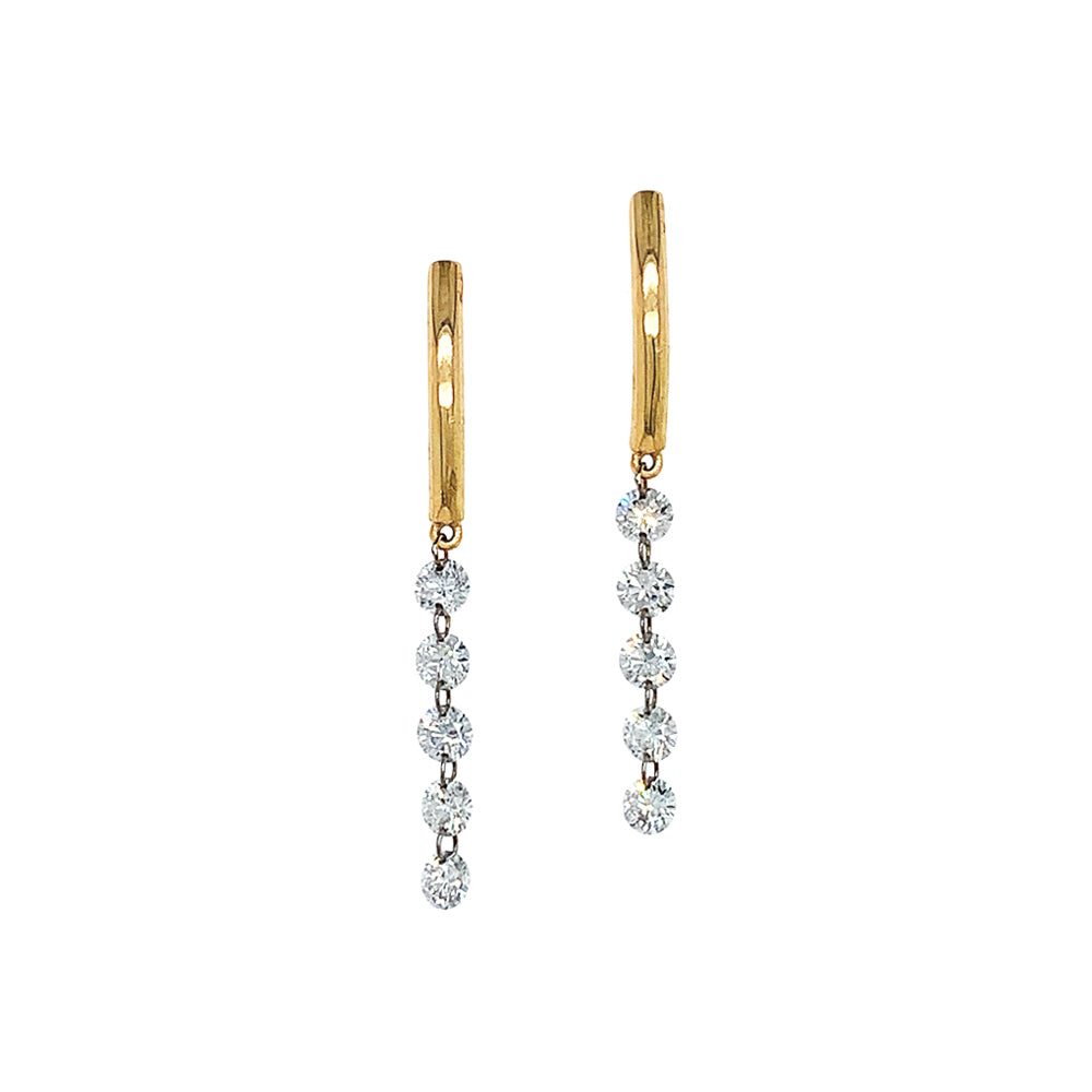Each dangling diamond is laser-drilled and joined with platinum wires,Β this keeps it securely attached while allowing it to move freely. These diamonds catch the light as you stroll, dance, and pose... or whatever other fabulous activity you plan on doing.Β