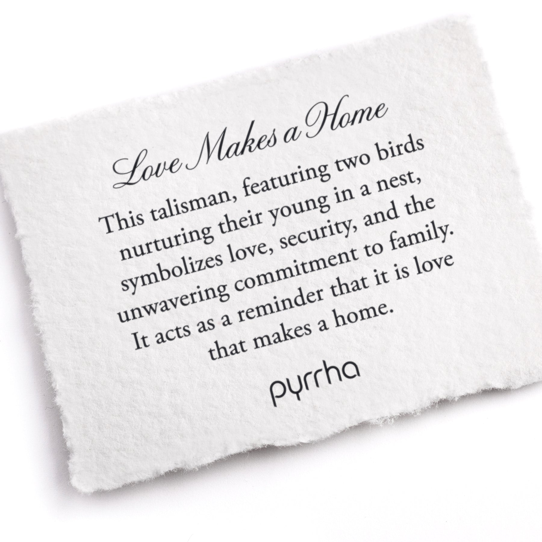 Cradled within this talisman is a quiet moment: two birds tending to their nest, nurturing the next generation with unwavering care. It speaks to the heart of what family means—love that protects, supports, and never lets go. More than a symbol, it’s a reminder that a true home is built not from walls, but from love. Wear alone or layer with other meaningful Pyrrha creations.