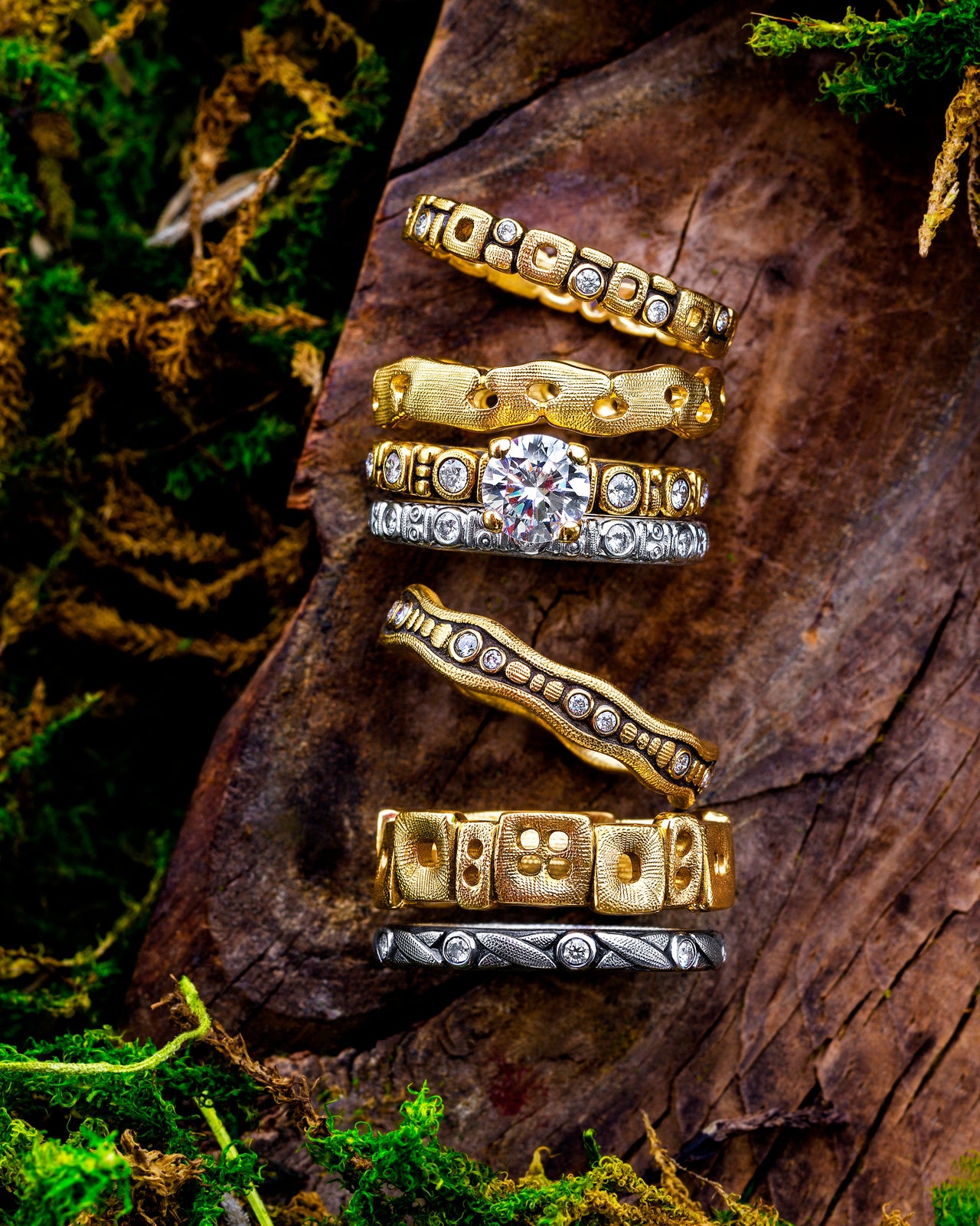 Alex Sepkus is known for his intricate craftsmanship and unique designs. He emerged as a game-changer in the industry, with his work being compared to half painting and half sculpture. Using simple tools and working with small pieces, Sepkus learned to manipulate metals with precision and design. Intricate details and meticulous lines that wrap, twist, dot, and circle around gems and statement stones results in pieces that have an antique feel and stand out from the crowd. Sepkus' timeless collection will continue to be highly sought after in the future, akin to fine estate jewelry.