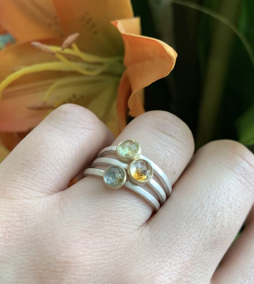 18K gold:  in yellow, rose, or green, 18K gold is often considered the “crowning glory” of a fine piece of jewelry. Ideal for a rough wearer, due to its long-term durability; this metal’s forgiveness makes it ideal for setting colored gemstones, especially more fragile ones. 18K gold items need to be checked for wear quarterly. 18K gold scratches more easily than 14K gold, so a piece with large expanses of uninterrupted metal may develop a “worn” look readily. A polishing cloth will keep them looking their best.