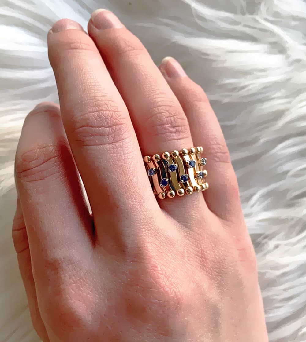 Tension-setting:  while counter-intuitive, this setting style is safer than prong-setting, and offers the distinct advantage of exposing the diamond or sapphire to more light than any other setting technique.  Losing a stone from a tension-setting is due to traumatic blows almost exclusively.  Since the stone is very easy to access, this setting type is very easy to clean.