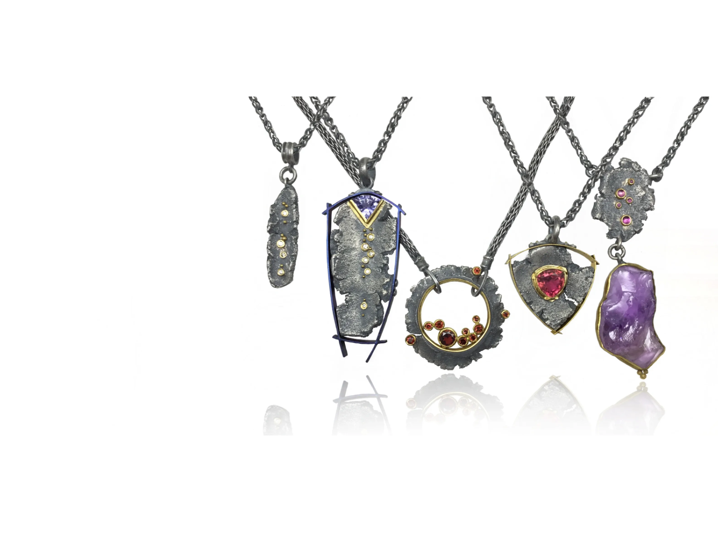 Immerse yourself in a world of uniqueness in many forms as you explore the stunning collection of fine jewelry created by the renowned designers, Catherine and Michael Jensen. [Fun fact: Michael had just acquired the trademark for "Michael Jensen Designs" when Catherine and he became "a thing." But don't let the name fool you...Michael and Catherine are a team!]