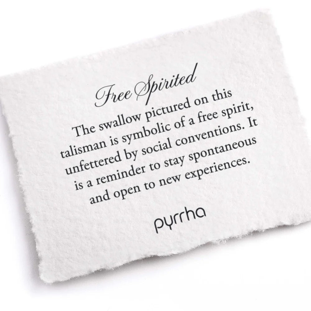 Colorful with stunning iridescence, this 'Capri Blue' necklace is nothing short of captivating. Featuring a swallow framed by shining silver, this talisman is representative of the free-spirited person who is unfettered by the traditional norms of society. Wear and always be reminded to be truly spontaneous and live in the spur of the moment.