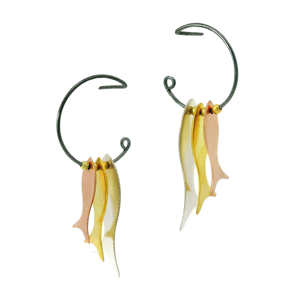 Add a touch of whimsy to your everyday look with these fun fish family earrings! A trio of multicolored fish dangle from oxidized sterling silver stud earrings, accented by delicate gold vermeil beads between each one. Handmade in Turkey in collaboration with local artisans, Anatolia Art’s designs celebrate traditional craftsmanship with a modern flair.